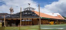 Los trabajos de remodelación de la glorieta de San Sebastián avanzan en un 90%. En la actualidad se realiza el revestimiento de pilastras con tabla de pino, cielo raso falso con terminado tipo madera y se procederá a colocar sobre la losa construida adoquín de hormigón de color con figuras y cromática según el diseño de planificación.
