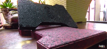 El caucho, producto de las llantas que son desechadas tienen un tratamiento especial. Esta empresa nacional lo recicla, limpia y tritura, luego lo pasa por una máquina donde es pigmentado y recibe el color deseado, posterior a ello, se le da el uso que se requiera.